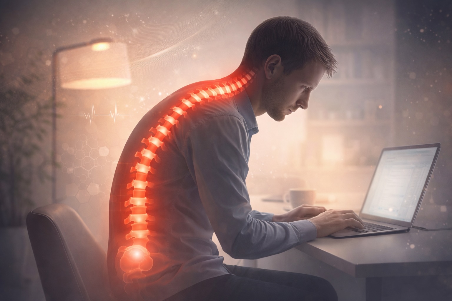 Anche una postura apparentemente “comoda”, come sedersi con il bacino retroverso e la schiena incurvata, altera la fisiologica curva lombare. Il risultato può essere una lombalgia persistente che non trova una causa immediata evidente, ma che deriva da micro-sollecitazioni ripetute giorno dopo giorno.